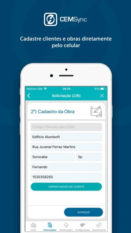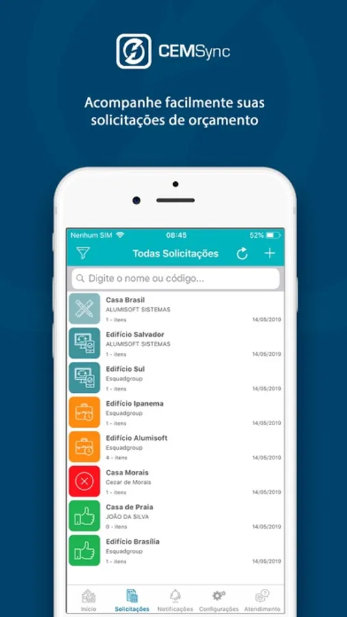 Solicitação de orçamento no papel é coisa do passado. Com o CEM Sync, você faz suas solicitações em qualquer lugar no celular e envia online direto para o CEM da sua empresa. Você otimiza tempo com uma solicitação padronizada e evita o retrabalho.