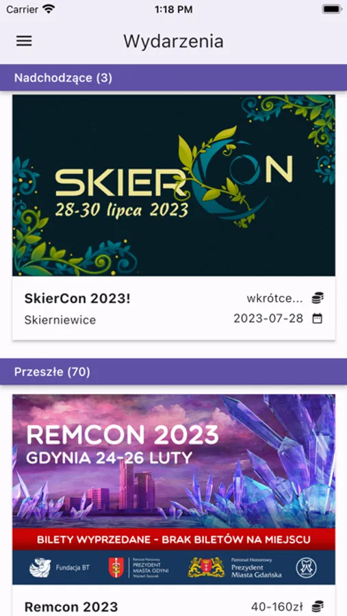 * filtrowanie wydarzeń na podstawie typu - RPG, turniej, manga czy Gwiezdne Wojny - znajdź to co Cię interesuje