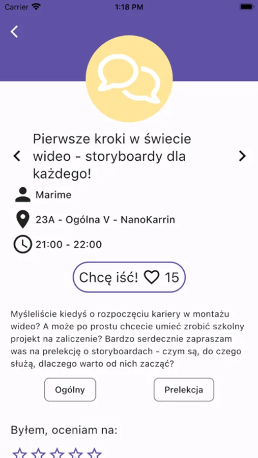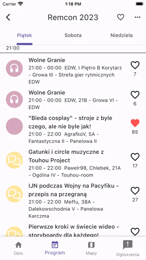 * serduszko - pokaż na co chcesz iść i zobacz co jest najpopularniejsze wśród uczestników,