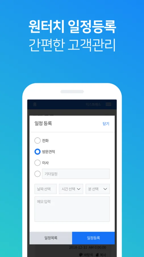 - 오더목록에서 “일정"버튼으로 스케줄 자동 등록