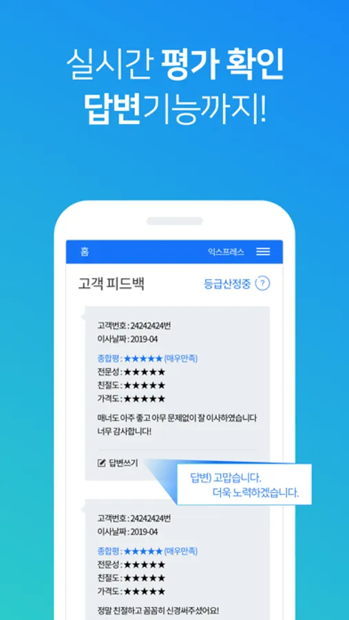 - 내 고객이 등록한 평가점수, 피드백 실시간 확인