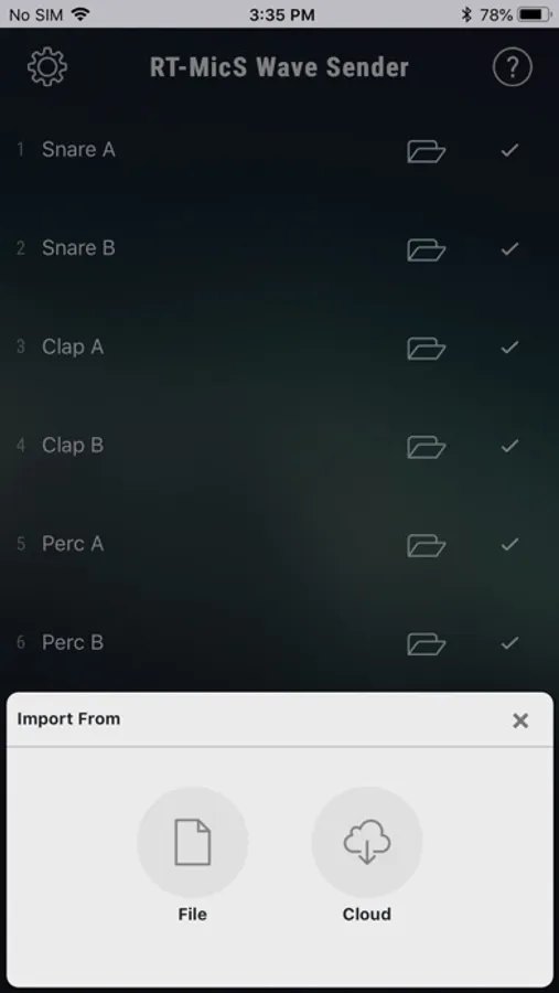 The free RT-MicS Wave Sender app allows you to import your own custom samples into the RT-MicS using your mobile device. This opens up all sorts of creative possibilities, such as layering original sounds from studio recordings with an acoustic snare or tom, mixing in sound effects, or triggering complementary percussion sounds like tambourine by striking a drum (no mic needed).