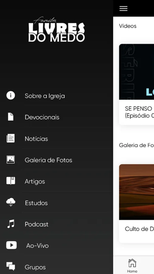 Aplicativo Oficial da Igreja Livres do Medo conta com as seguintes funcionalidades: