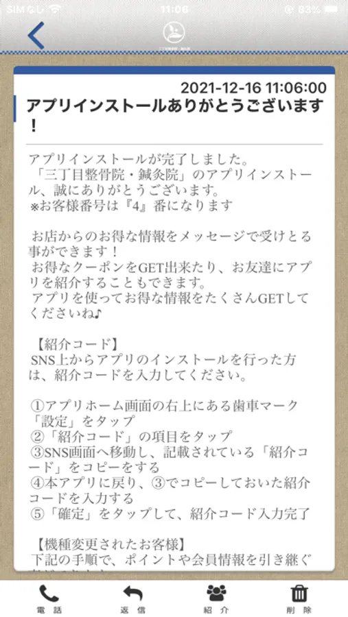 三丁目整骨院のアプリをSNSを通じてお友達に紹介する事ができます。