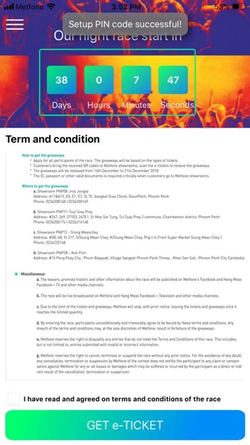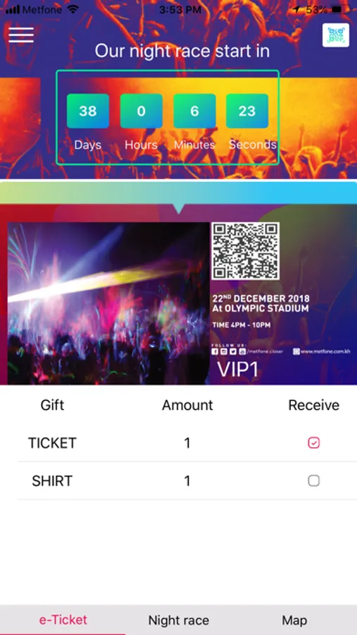 This application intended for customer of Metfone, who have enough condition to attend ColorRace 2018 program. Customer can use app to receive eTicket, gifts from Metfone and check-in to entry the race location.