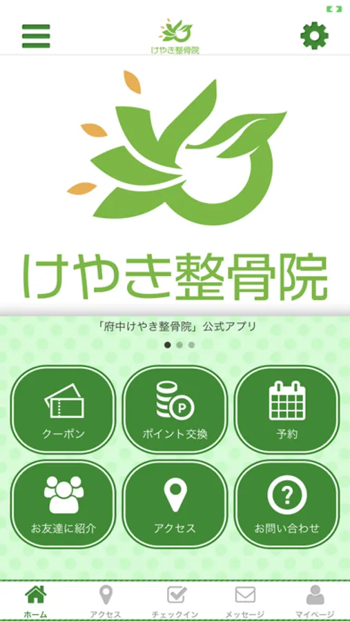 このアプリでは、けやき整骨院の最新情報の受け取りや便利な機能を使う事ができます。