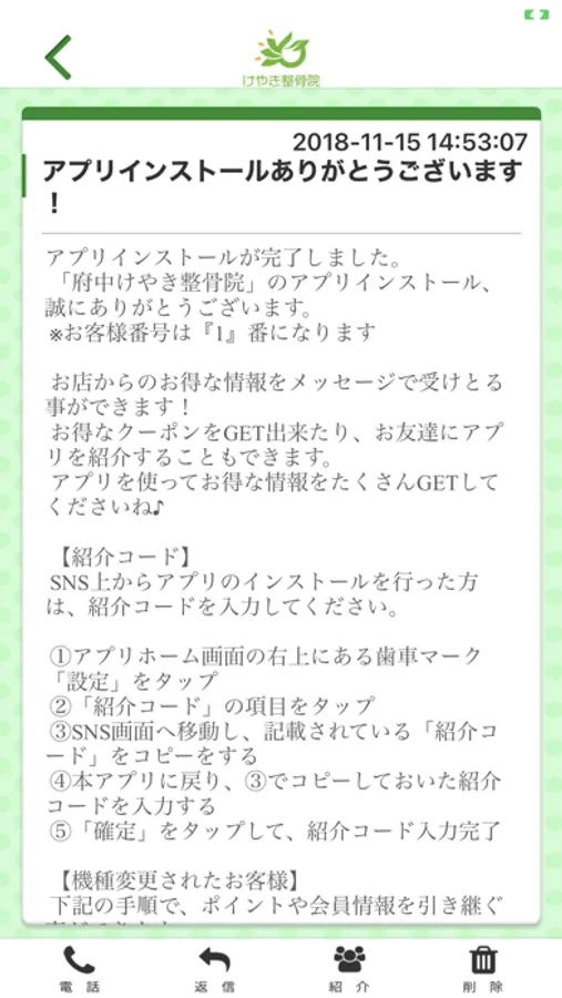 けやき整骨院のアプリをSNSを通じてお友達に紹介する事ができます。