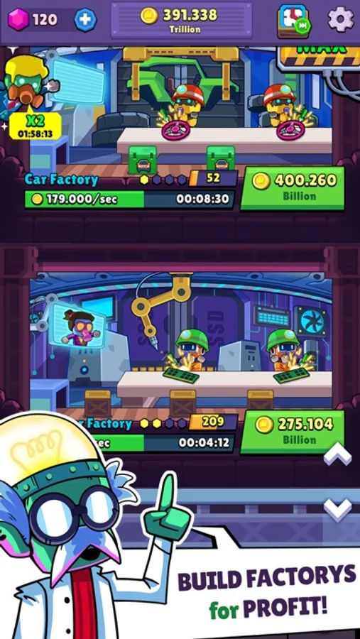 • Tap or click to make money, expand your factories floor with many different manufacturing industries … Keep clicking! This is the secret to get richer.