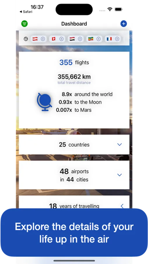 Do you love exploring the world? This app is with you to remember your footprints! No matter if you are into keeping track of your travels on the map, collecting countries you visited, analyzing statistics of where you've been, reviewing flight details before your trip, or earning badges while you travel - open the app and go for it!