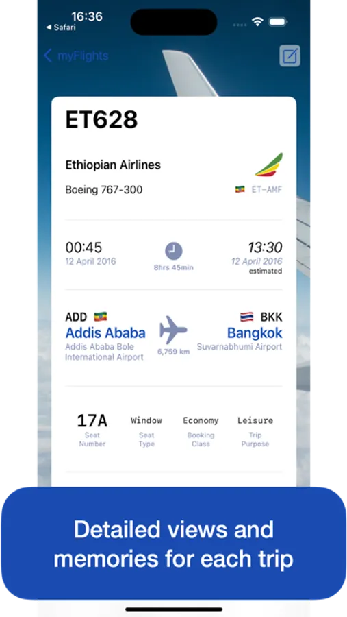 This app it is non-commercial, ad-free, entirely free of charge, privately developed. I appreciate your feedback and suggestions to support@myflights.com