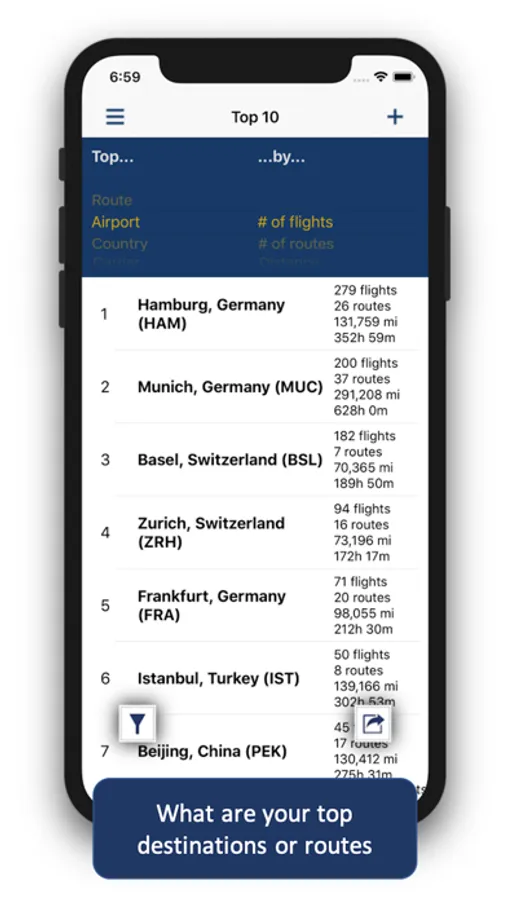 - Advanced filter options, allowing all of the above (of course including the map) adapt to your selection of trips only, e.g. by year, carrier, origin or destination
