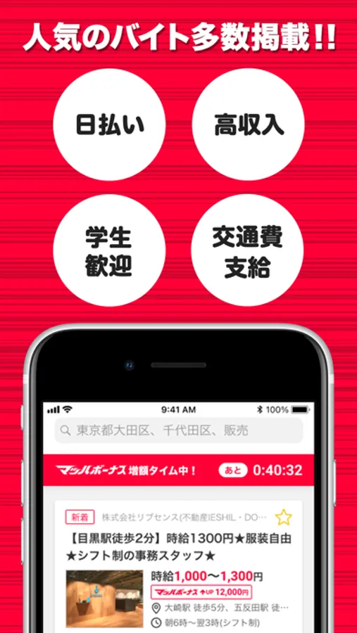 アルバイト、パート探し、ダブルワークのアプリをすぐにお祝い金もらって始めるならマッハバイト。