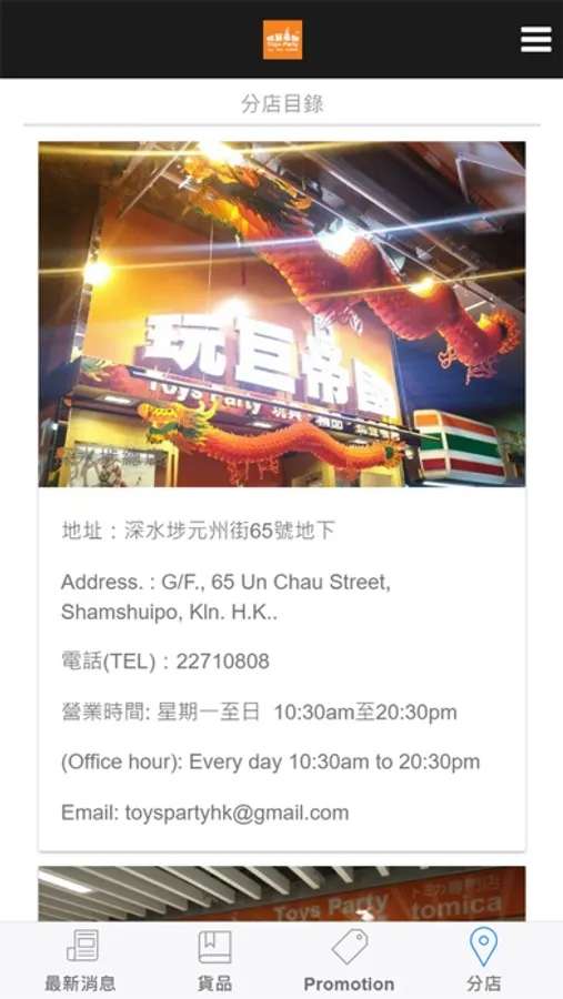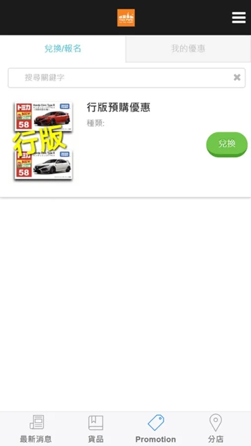 透過此手機App,隨時掌握“玩巨帝國”最新資訊,如Tomica、Tomytec、爆旋陀螺、高達、各類玩具及精品等,亦可透過購買指定商品,獲取電子印花!