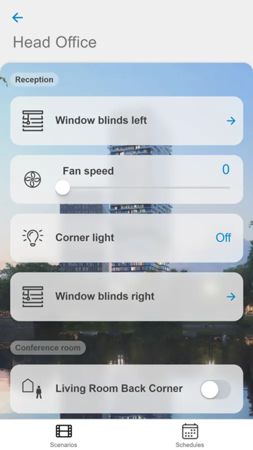 Mobile Room Control enables the control of light, temperature, blinds, ventilation and much more, depending on the respective building equipment in conjunction with the SAUTER Cloud.