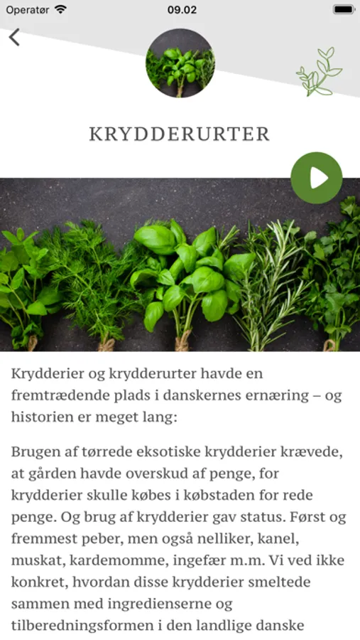 I denne App kan du høre 8 spændende fortællinger om arbejdet med den levende kulturarv. Hør bl.a. den kendte gastronom Per Mandrup fortælle om mangfoldigheden af krydderurter i den historiske have på Det Grønne Museum og Bettina Buhl fortælle om kålens historie og anvendelse i Danmark.