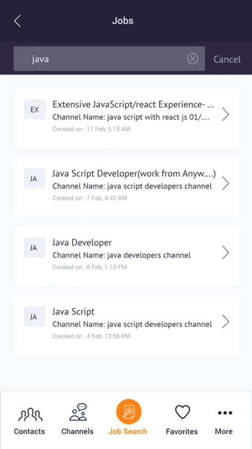 BlueHippoChat app makes finding jobs easier.Follow a channel and get jobs which matches your skill set.