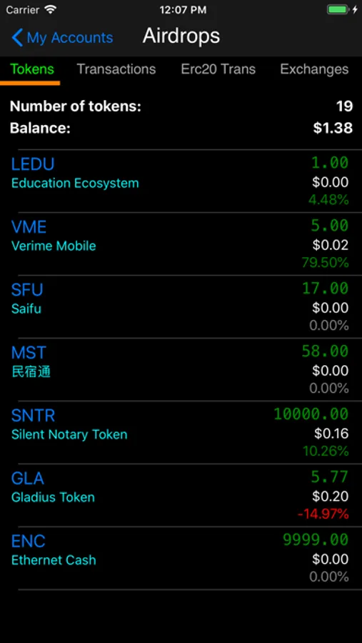 Detailed information on all your Ethereum based tokens and all transaction data.