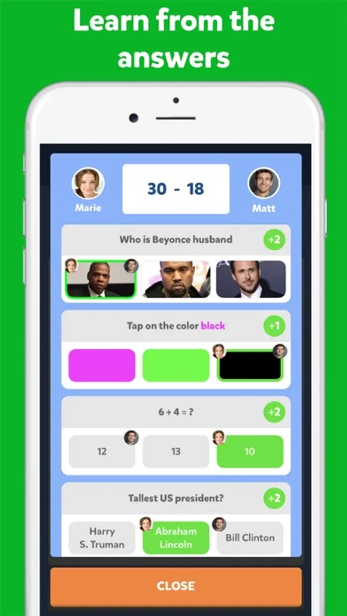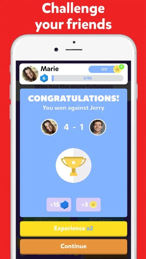 Discover millions of questions and get more point than your opponent to win the match. Play online against your friends or random real players. Win coins and experience quickly and make it amongst your friends and worldwide!