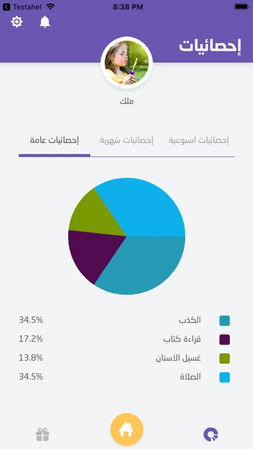Testahed Kids App is a part of the original application (Testahel) and acts as a platform that enables kids to follow and watch their attitude and rewards.