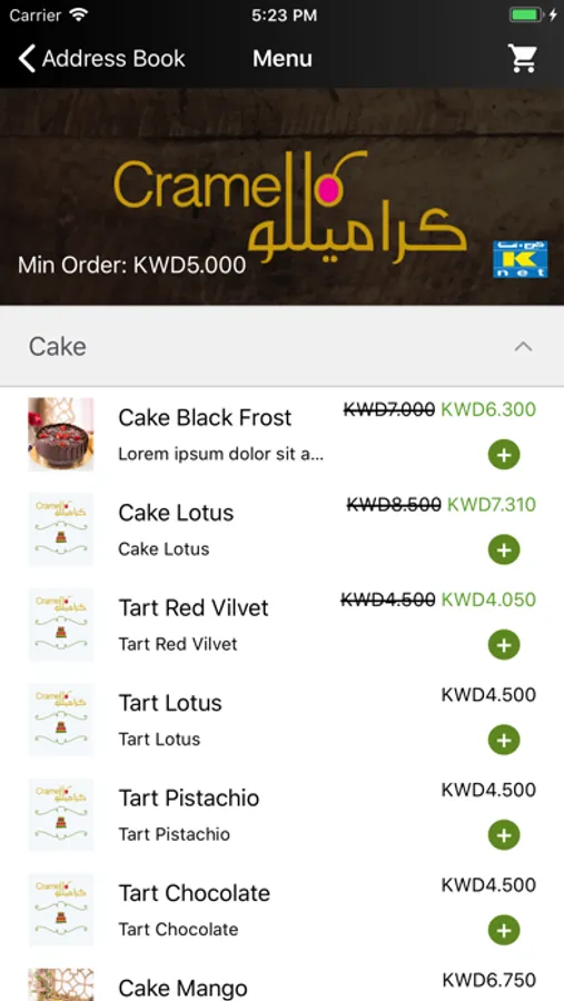 اضف اصناف الطعام او الحلويات المختلفة الى سلة مشترياتك و تابع آخر الخصومات و العروض في مكان واحد. حدد طريقة الدفع التي تريدها أون لاين او نقداً عند استلام الطلب.