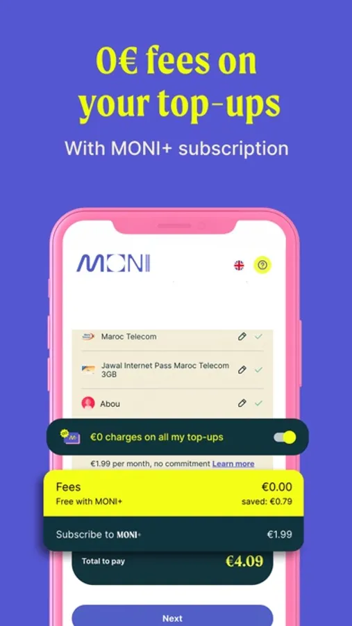 With MONI (ex Allo Monisnap), pay less to instantly recharge your mobile (credit, package, internet data) or that of your loved ones! Take advantage of a large distribution network thanks to our partners (Ding / DTOne).