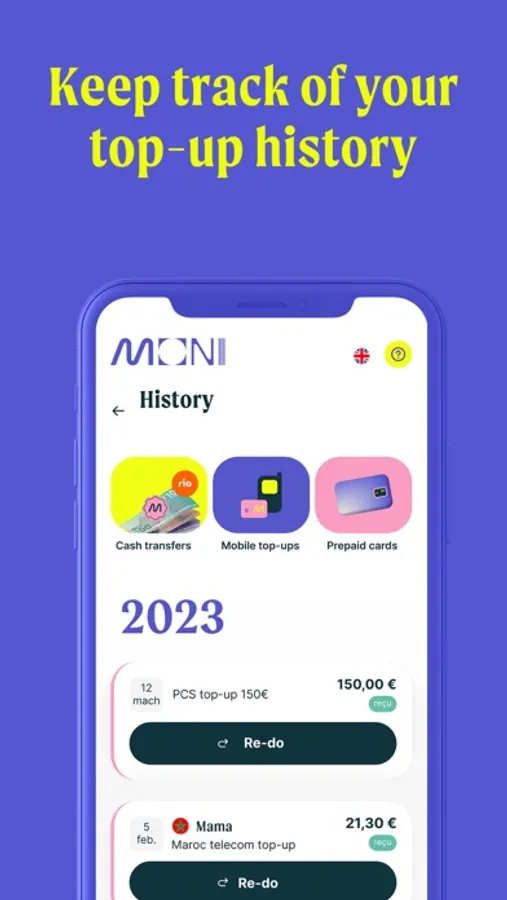 At MONI, we prioritize your security and the privacy of your information when using our services: mobile top-up, cash transfer and prepaid card top-up (PCS, Transcash...). Your information is encrypted and we use a secure SSL connection.