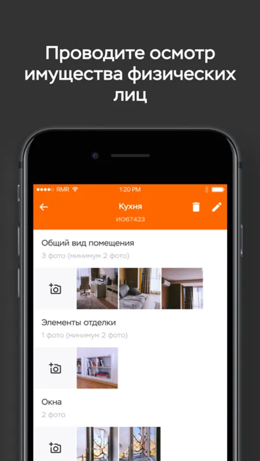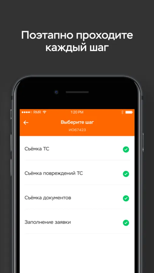 Приложение позволяет специалистам: создавать заявки на проведение осмотра, проводить осмотр, указывать повреждения и основную информацию об автомобиле, загружать выполненные заявки в учётную систему Компании.