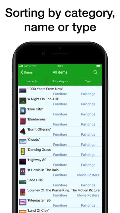 • Sorting objects by category, name, type