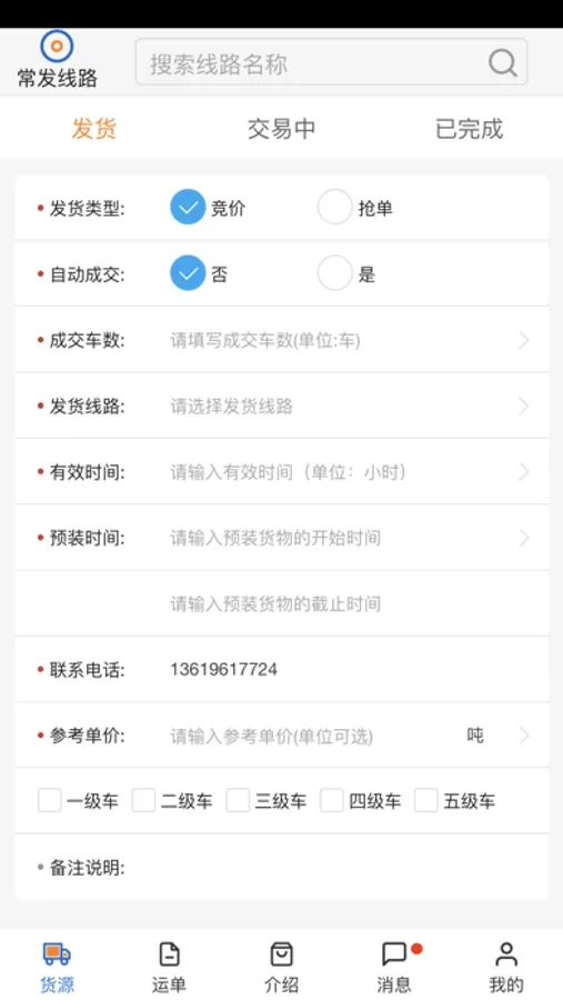 瑞和锦程货主端是车货匹配货主移动端应用软件,通过本软件的应用,货主可以在线发布货源信息,设置手动成交与自动成交,形成订单后,货主方可以同车辆形成物流信息共享,在物流过程的各个状态与车辆互动,以便物流过程的高效执行。