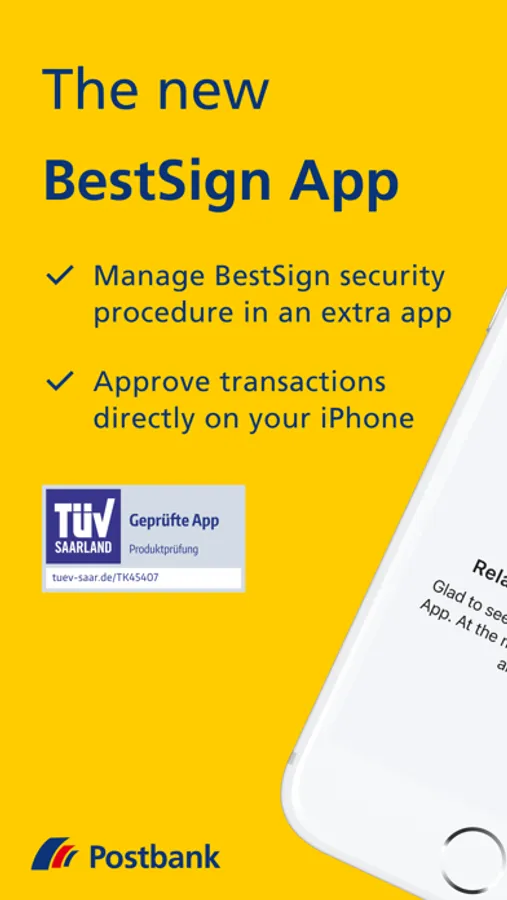 Our BestSign App isn’t another Banking-App, but rather a separate application for your BestSign procedure. You just want to approve your transactions with your handheld device?