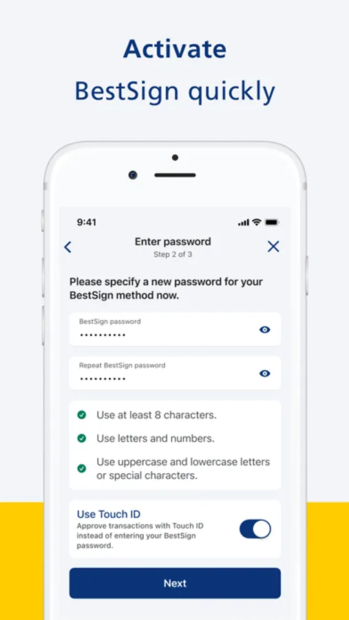 "New design, new technology, same security standard and convenient usage. Your BestSign procedure in a separate app!