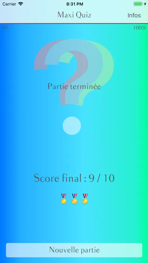 Pour gagner des étoiles il faut que : total de réponses bonnes / nombre total de questions =