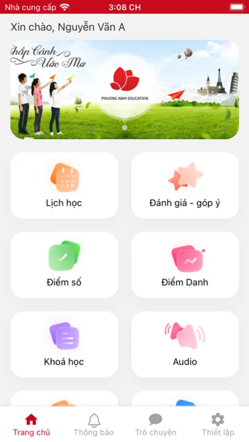 Ứng dụng xem lịch học, kiểm tra điểm số, gửi phản hồi, hỗ trợ việc dạy và học tại trung tâm Phương Nam Education