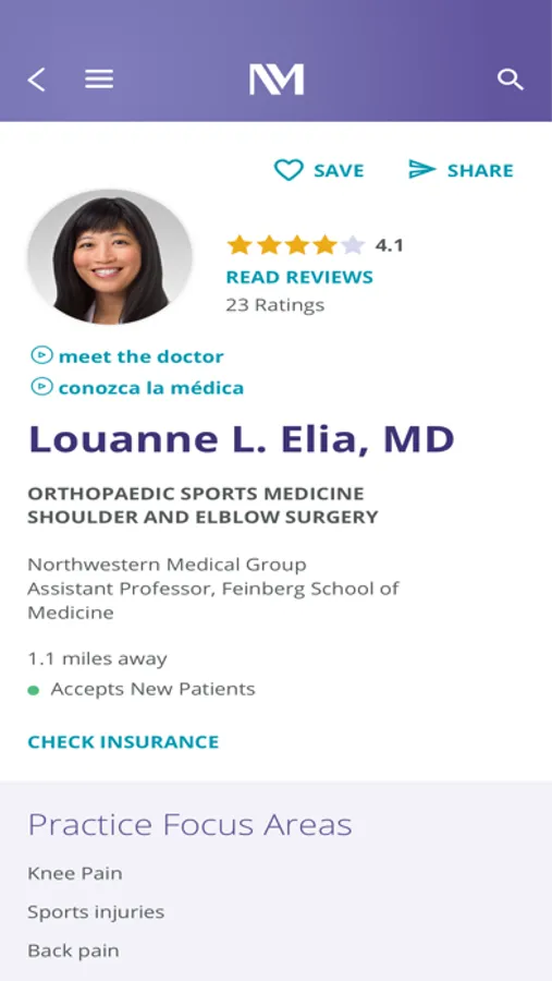 • View detailed profiles for over 4,000 Northwestern Medicine physicians: locations, practice focus area, availability, and board certifications