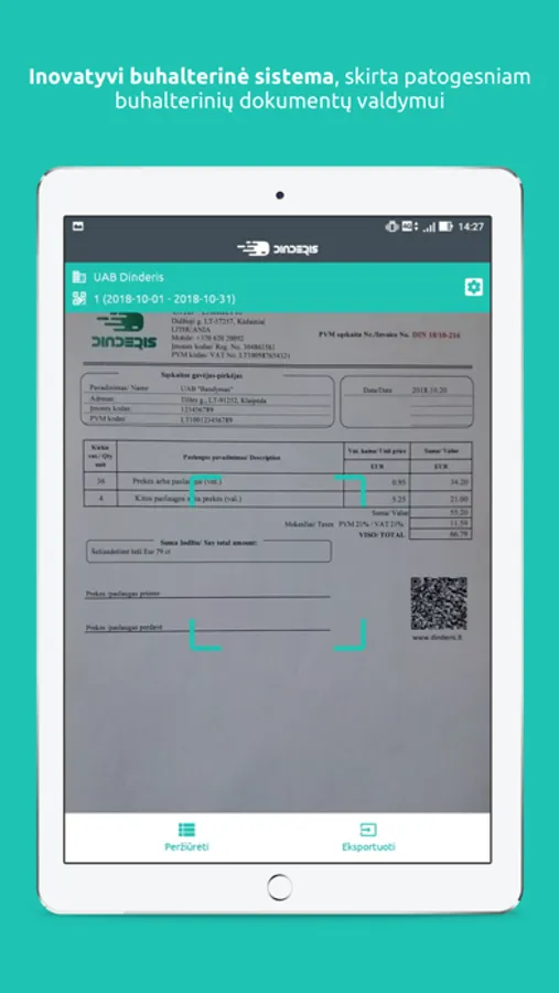 2. Skanuokite gautas sąskaitas, ant kurių yra atspausdintas QR kodas.