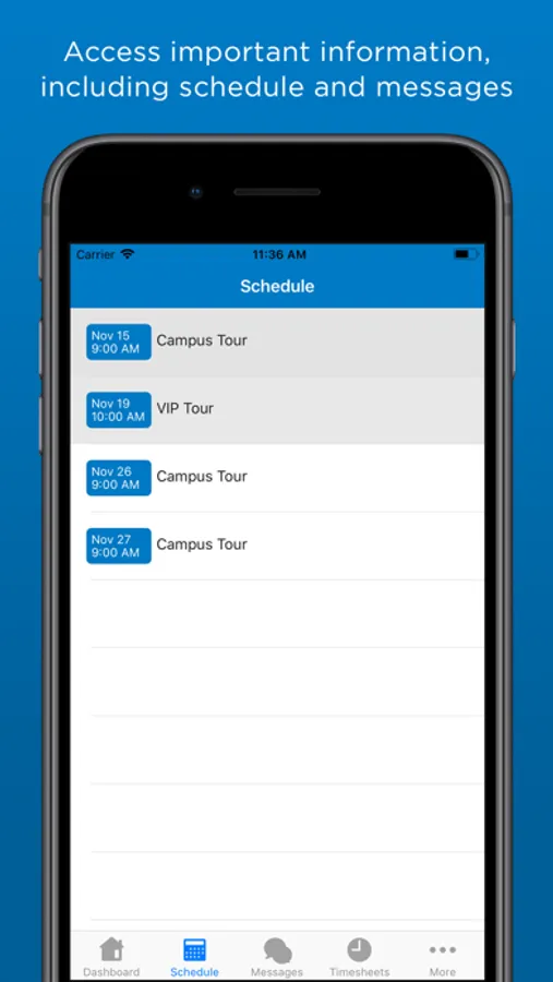 The Welcome To College Ambassador app gives ambassadors easy access to their schedule, messages and timesheets. Create new messages and request shift coverage directly from the app. Enable push notifications for instant notification for new assignments and messages.