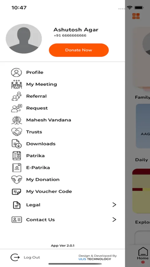 This section showcases the information about Family members, My Meeting, Notification, and referral.