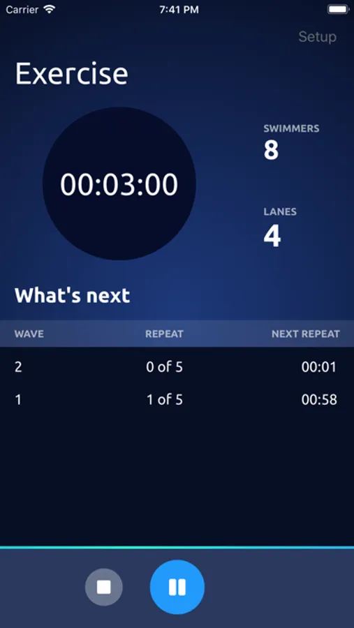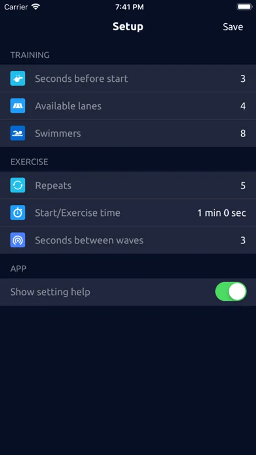 - Define the number of repeats for an exercise (e.g. 4 x 100m Freestyle)