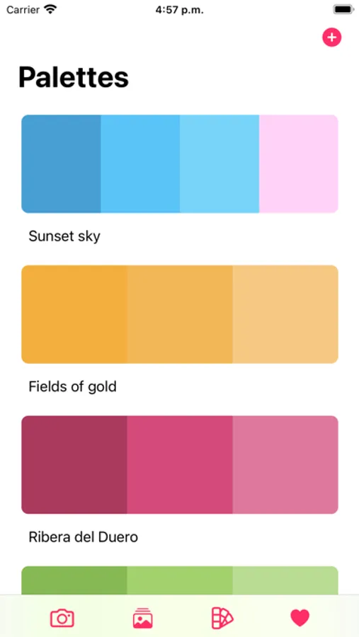 Palettte let you store 10 color palettes for free. Upgrade with a in-app purchase to store all the palettes you need.