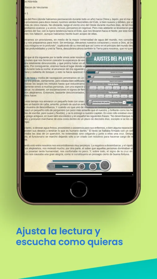 No sólo queremos que te diviertas andando en nuestra librería 3D, sabemos que también es importante que sientas la lectura en un dispositivo móvil como nunca antes, como un auténtico libro, incluso sonido de hoja, sin olvidarnos de la escucha de nuestros audiolibros, con la funcionalidad de velocidad de reproducción, de escucha y lectura simultánea en muchos de nuestros títulos.