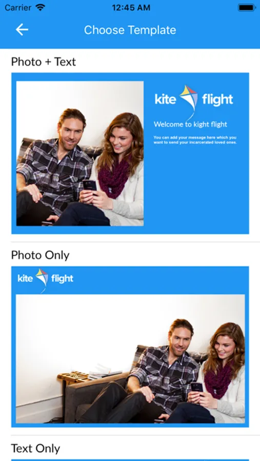 Kite Flight helps you send postcards to your incarcerated loved ones - all from your smart phone.