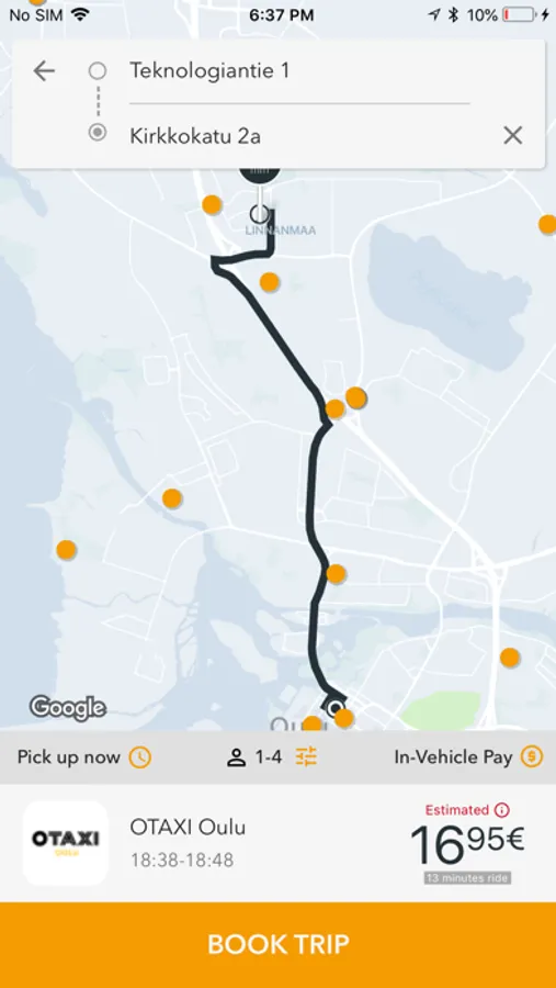 Order a taxi cab in Northern Ostrobothnia region in Finland from OTAXI Oulu using your iPhone