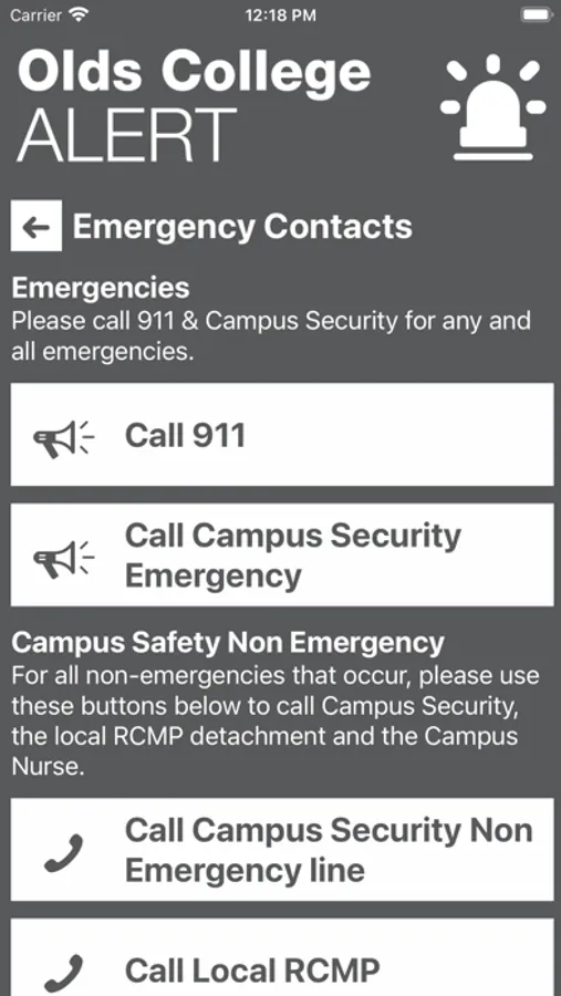 - Emergency Contacts: Contact the correct services for the Olds College area in case of an emergency or a non-emergency concern