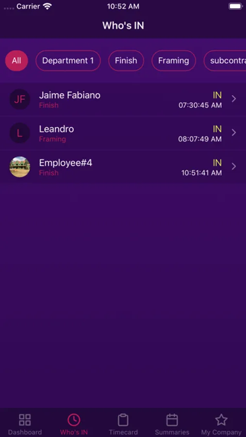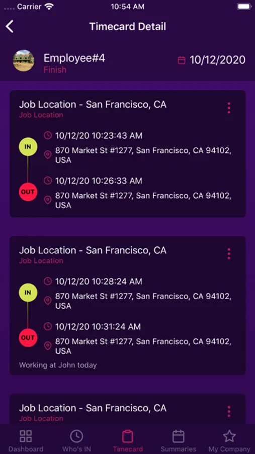 Employees can clock in or out with just one click, even without cellphone coverage.