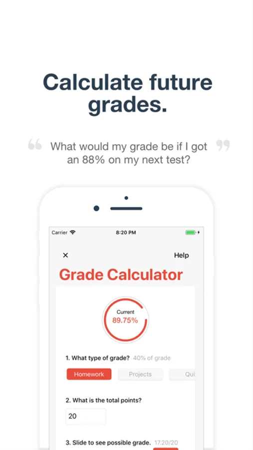 Have you ever tried to calculate your grade? It can get confusing fast. Or have you ever tried to see what grade you need to get on a final to get a passing grade? Grade Pal is the best way to answer these questions.