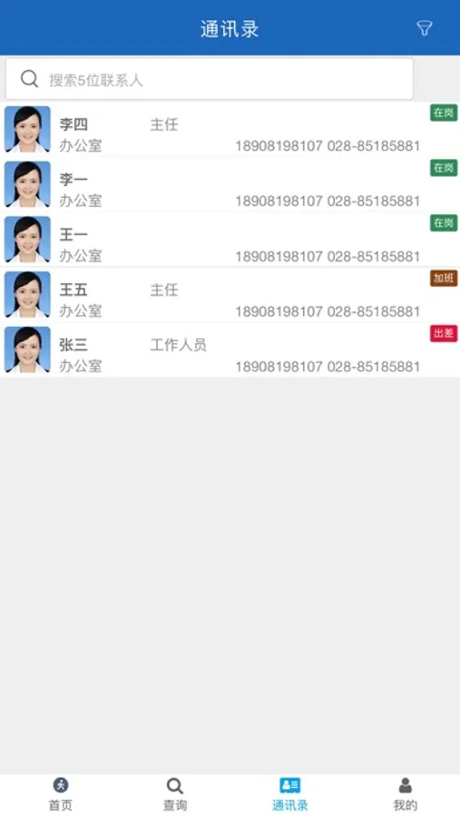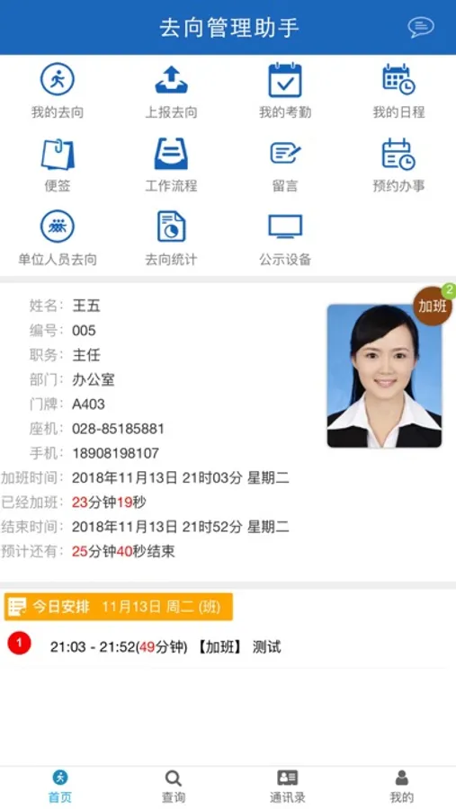 一套适合机关,企事业,医院,学校等单位使用的人员去向动态管理工具,可查询和管理员工的当前去向状态,去向状态及时与前端公示屏同步。领导能随时了解员工去向状态(在岗,请假等各有多少人一目了然),增强了整体筹集、协调管理和联动协作能力。