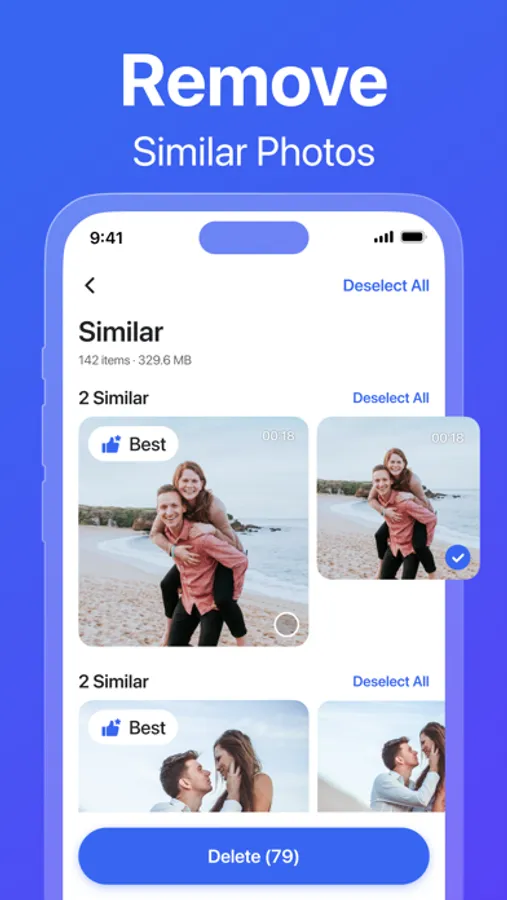 - One Tap to remove duplicate photos: Just one tap to easily find and delete duplicate photos.