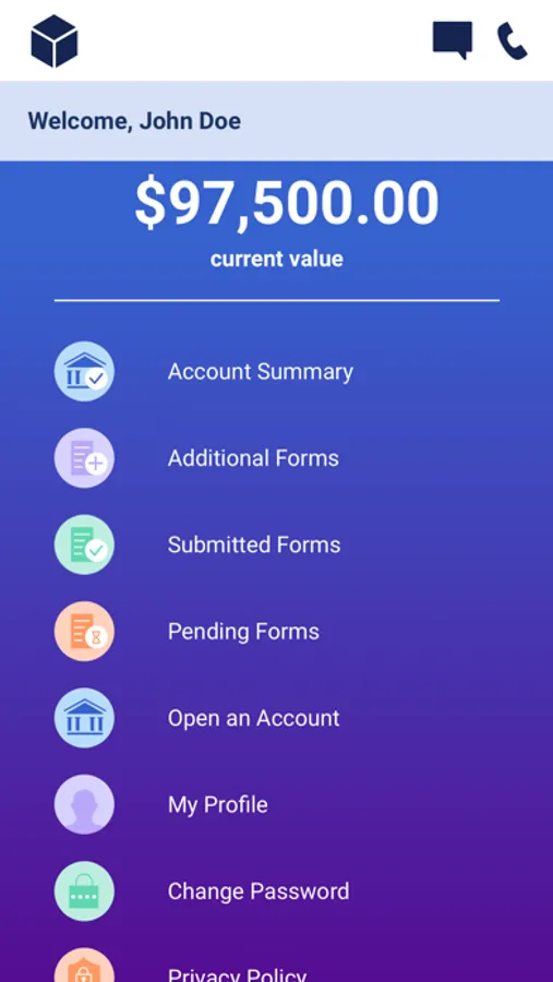 Account Maintenance Options: A supplemental forms section has been built into the app so that clients may electronically sign forms to execute common account transactions, all without ever having to deal with physically signing or handling a paper form. We will be expanding this section with further releases of the app.