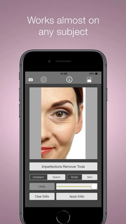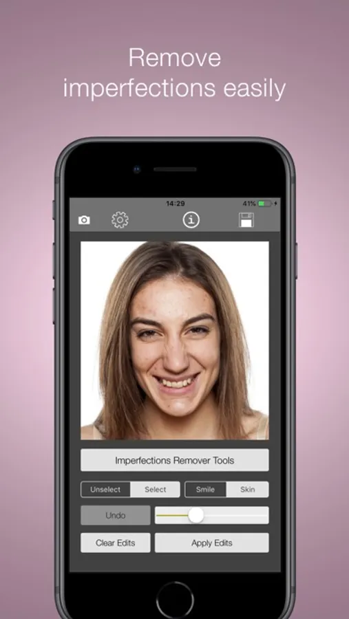 Quick and easy, only two tools that simplify the usage, remove all the skin imperfections and whiten your teeth. Thanks to its intelligent algorithm it recognizes the perfect settings in order to improve the makeup and make it look real.
