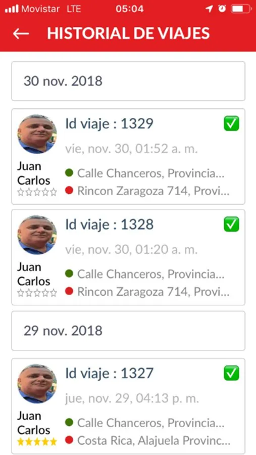 * Historial de tus viajes